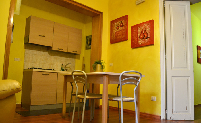 si compone di un' ampia cucina aggraziata da un tipico balcone in pietra leccese da cui affacciarsi per godere lo splendido sole salentino.Alla sinistra dell'ingresso un corridoio introduce nella prima stanza da letto arredata con due lettini singoli o letto matrimoniale ,confortevoli armadi,poltrona(per eventuale letto aggiuntivo).La camera e' munita di TV digitale schermo piatto, termosifoni e condizionatore caldo/freddo .Infine bagno interno dotato di doccia e di tutti i conforts necessari per una serena vacanza.Un corridoio introduce nella seconda stanza da letto ,una vera e propria "bomboniera" dotata di tv color,bagno in camera con doccia ,letto matrimoniale,poltrona(per eventuale letto aggiuntivo) ,termosifoni e condizionatore caldo/freddo.Inoltre ben 3 finestre che affacciano su diversi punti della citta'.