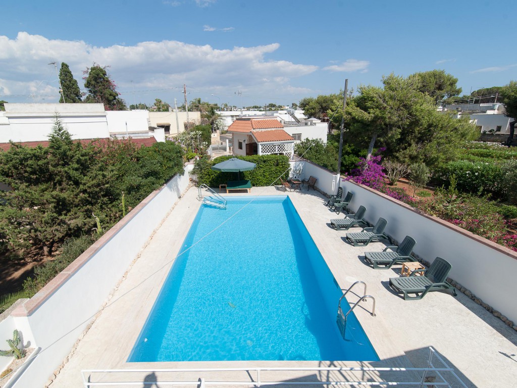 La comoda piscina è al riparo da occhi indiscreti con grandi spazi che ne permettono l'agevole utilizzo da parte degli ospiti.