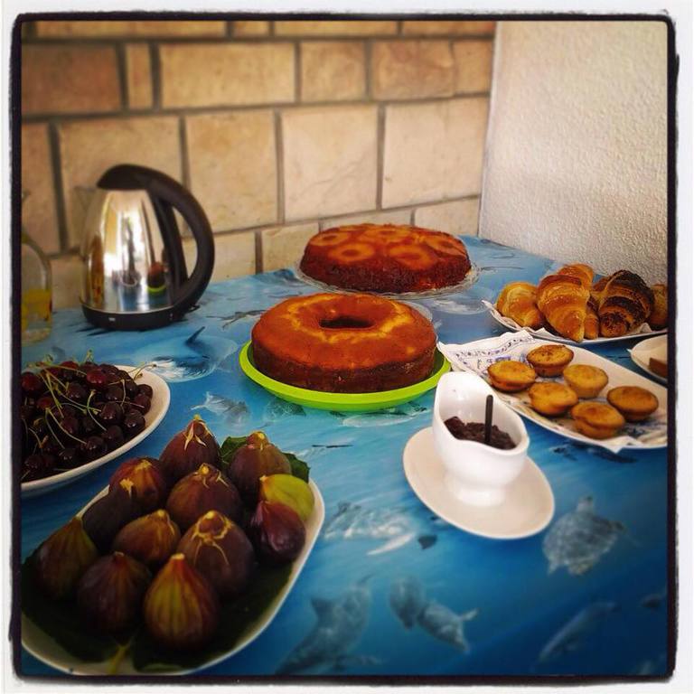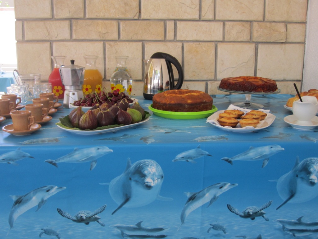 1)di una deliziosa abbondante e completa colazione al mattino con prodotti tipici fatti in casa che verrà fatta nella veranda predisposta e a bordo piscina