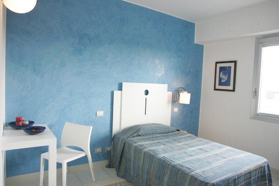 L'Hotel dispone di 20 camere luminose,confortevoli e funzionali,arredate in stile moderno.Ogni camera è stata progettata ed arredata artigianalmente con elementi esclusivi.Tutte le camere singole prevedono un comodo e spazioso letto a una piazza e mezza.Tutte le stanze hanno pareti decorate con stucco venezianodi colori diversi: dal caldo arancio si passa al rilassante blu, dall'intrigante rosso al rasserenante verde,dal campagnolo zucca al minimalista bianco...colori moderni legati a quelli che sono tradizionalmente gli elementi cromatici della terra salentina.I nostri clienti possono,inoltre,godere di tutti i comforts tecnologici,quali chiave elettronica con badge personalizzato che attiva automaticamente luci e climatizzazione nella stanza,accesso dall'ascensore esterno ed apertura del cancello di recinzione.L'Hotel è accessabile e dotato di comfort per ospiti diversamente abili,sia soli,sia accompagnati,l'accesso e l'utilizzo dell'intera struttura sono comodi,pratici e confortevoli.