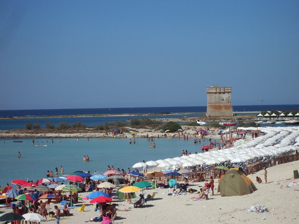 La localita' prende il nome dall'omonima torre di avvistamento cinquecentesca, oggi parzialmente diroccata,fatta costruire dagli spagnoli per difendere il Salento dagli attacchi dei pirati saraceni.Fa parte della marina anche un piccolo isolotto antistante la costa denominato dai leccesi "Lu squeiei"(lo scoglio).Guardando verso l'orizzonete ,appena di fianco all'isolotto ,si intravedono nel mare tra i 5 ei 7 metri di profondita' ,una serie di colonne di marmo risalenti al 2° secolo a.C. Di particolare interesse naturalistico sono i bacini Idume e Fetida ,dove crescono alghe characee e brasca pettinata.Lungo le sponde sono presenti fitti cannetti,una "steppa salata" di Salicornia annuale e piante quali il narciso nostrale .Dal bacino Idume proseguendo verso nord sulla costa troviamo il nucleo residenziale estivo di Spiaggiabella ,con una splendida spiaggia e acqua cristallina.Nell'immediato entroterra troviamo il Paro Naturale Regionale Bosco e Paludi di Rauccio.