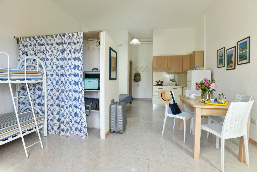 La struttura: è composta da appartamenti arredati in modo pratico e funzionale, inseriti in palazzine a due piani o in caratteristiche schiere su un unico livello, con ingresso indipendente e collegati da vialetti interni. Il Residence fa parte di un ampio comprensorio turistico aperto anche ai non residenti, al cui centro è ubicata la zona servizi e la reception. Gli appartamenti sono dotati di TV e terrazzo o balcone attrezzati con tavolo e sedie. Monolocale 3/4 al piano terra (mq.35 ca): ambiente unico e spazioso con angolo cottura, letto matrimoniale, letto a castello, servizi; Bilocale 2/3 letti al primo piano (mq.25 ca): soggiorno pranzo con angolo cottura e divano letto o letto piano, camera matrimoniale, servizi. Bilocale 4 letti al piano terra (mq.35 ca): come Bilo 2/3 con letto a castello o divano letto doppio in soggiorno. Trilocale 4/5 letti al piano terra (mq. 35 ca): soggiorno pranzo con angolo cottura divano letto o letto piano, camera matrimoniale, piccola cameretta con letto a castello, servizi; Trilocale 4/5 al piano primo: soggiorno pranzo con angolo cottura e divano letto o letto piano, camera matrimoniale, servizi, piano ammezzato aperto (con scala dal soggiorno) e con 2 letti piani. Trilocale 6 Super (mq. 55 ca): dislocati rispetto al centro servizi (150 mt) e raggiungibili con attraversamento stradale, sono disposti su due piani con scala interna, al piano terra soggiorno pranzo con angolo cottura e divano letto doppio, servizi con WC , lavabo e box-doccia; al primo piano camera matrimoniale, cameretta con due letti piani singoli, servizi con box-doccia.