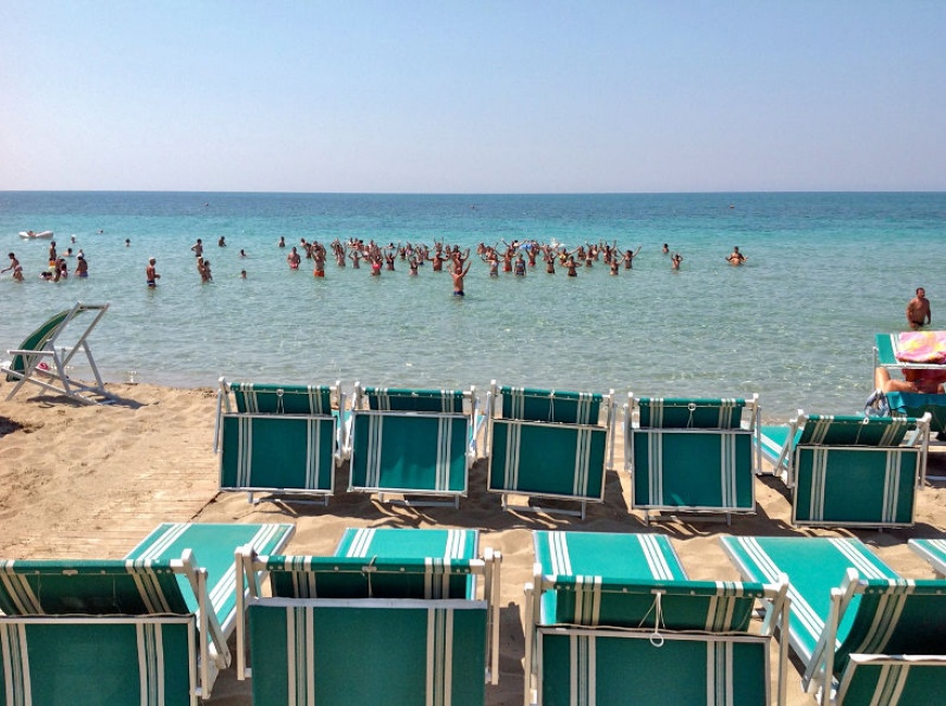 Spiaggia: Da 50 a 100 metri circa dalla lunga distesa di sabbia fine e dalla spiaggia libera; circa 250 metri dalla spiaggia privata attrezzata raggiungibile con stradina comunale, per un breve tratto sterrata. Servizio spiaggia obbligatorio con supplemento.